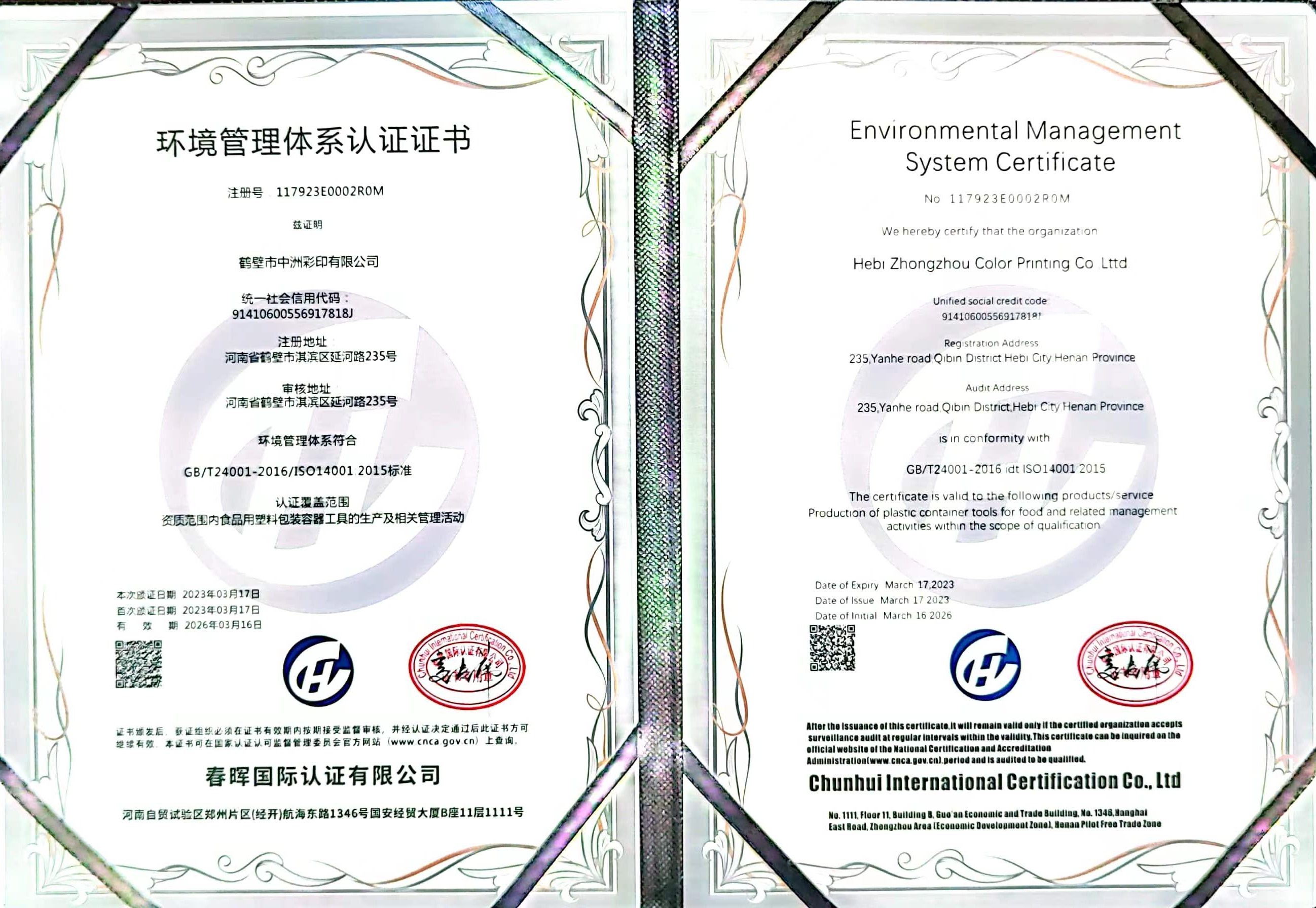 鶴壁市中洲彩印有限公司成立于2010年,位于鶴壁市開發(fā)區(qū)延河路235號,是一家集創(chuàng)意設計、制版、印刷、復合、制袋為一體的塑料軟包裝高新技術企業(yè)。公司占地42畝,建設有無塵凈化車間8000平方米。現擁有中、高速電腦對版印刷機3臺,干式復合機1臺,無溶劑復合機3臺,制袋機20臺,自有設計工作室,總投資5000余萬元。公司現有員工120余名,其中專業(yè)技術人員50人,年產值1.2億元。公司于2020年1月份通過了ISO9001質量體系認證,是目前豫北地區(qū)較大的塑料軟包裝制作企業(yè)。 →